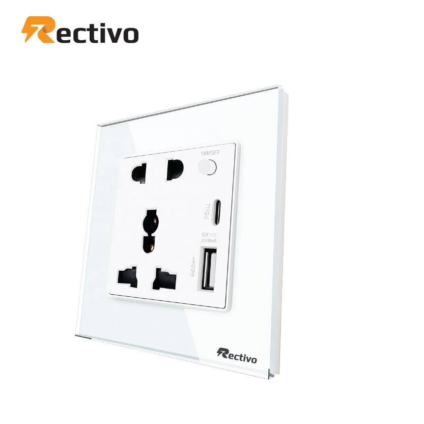 Glass Border 5 Pin Socket with Type C and USBRectivo Glass Border 5 Pin Socket with Type C and USB Port (White)